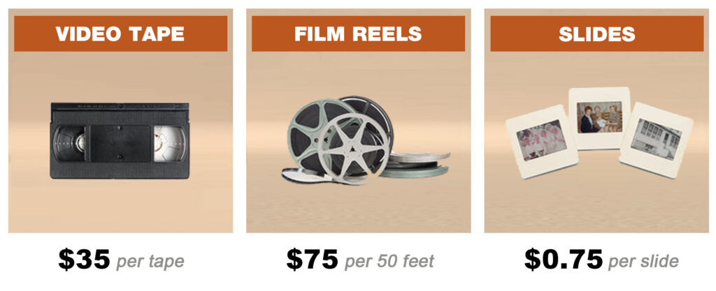 Select and click the "MEDIA CONVERSION". Choose the production option you want, then following instruction to pay for it.  After you processed the payment, you will receive the email to tell you we are going to work on it.  You will receive the email when done on it, email will also tell you a link to download the digital media that you can upload to your love one's memorial site.  After complet, we mail you back the media material that you sent to us by UPS.